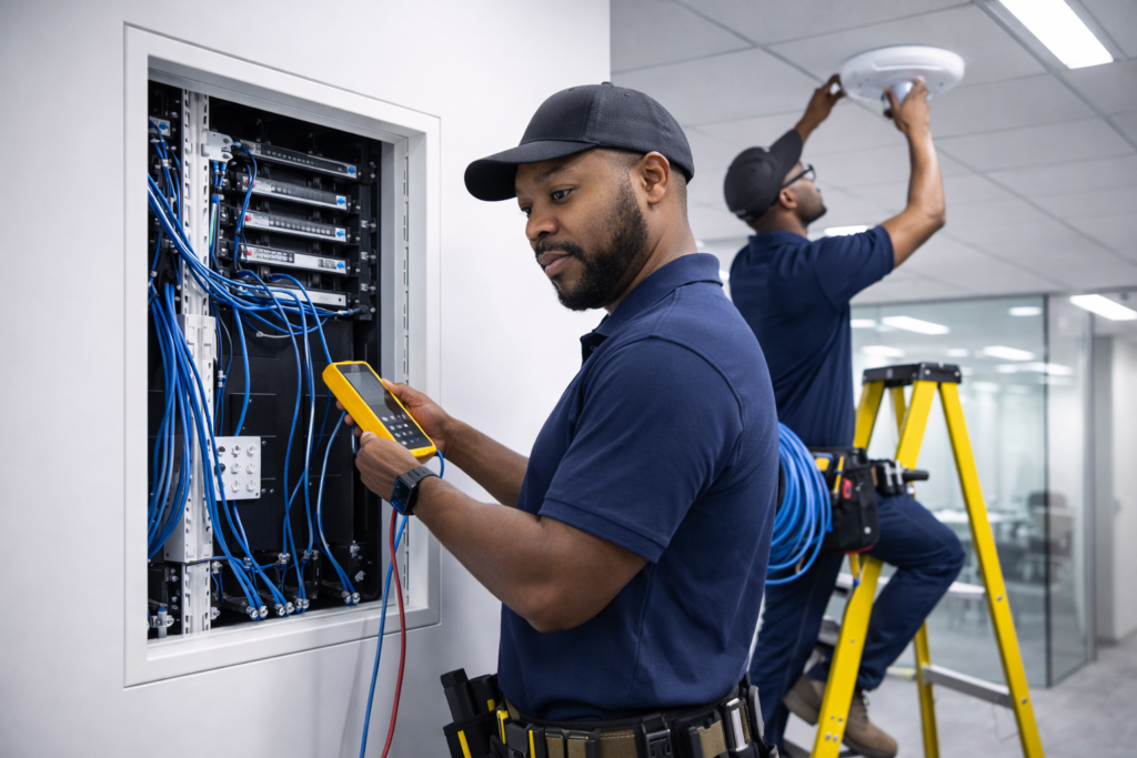 At NextWave Cabling & IT LLC, we differentiate ourselves through quality workmanship, reliability, and customer-first service. We prioritize clean, organized installations, dependable solutions, and long-term relationships with our clients. Our dedication to quality extends beyond the completion of a project; we are committed to ongoing support and maintenance to ensure that our solutions continue to meet our clients’ evolving needs. By staying at the forefront of technological advancements and industry best practices, we guarantee that our clients receive the most innovative and efficient solutions available. Our team’s expertise and passion for excellence drive us to exceed expectations, providing not just a service but a partnership built on trust, integrity, and a shared commitment to success.